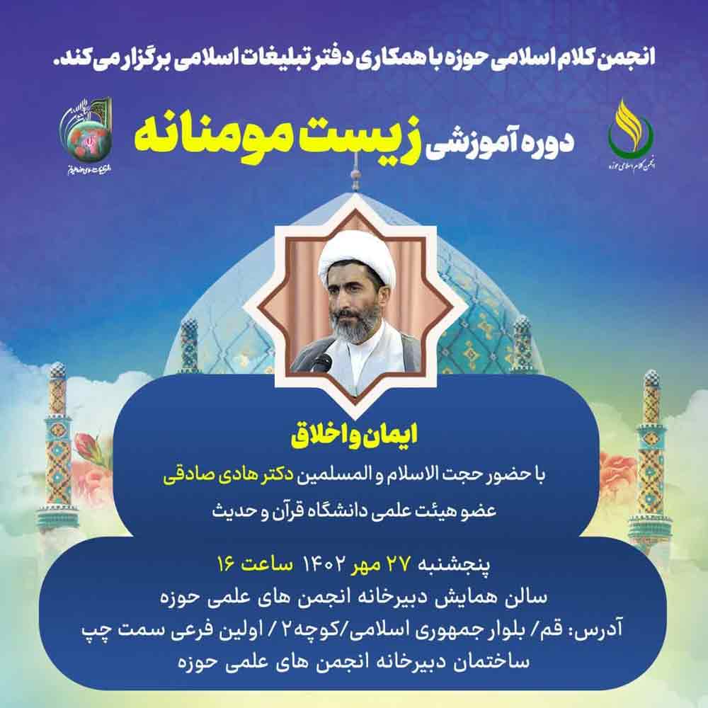 نشست زیست مومنانه با موضوع "ایمان و اخلاق" با حضور حجت الاسلام والمسلمین دکتر هادی صادقی
