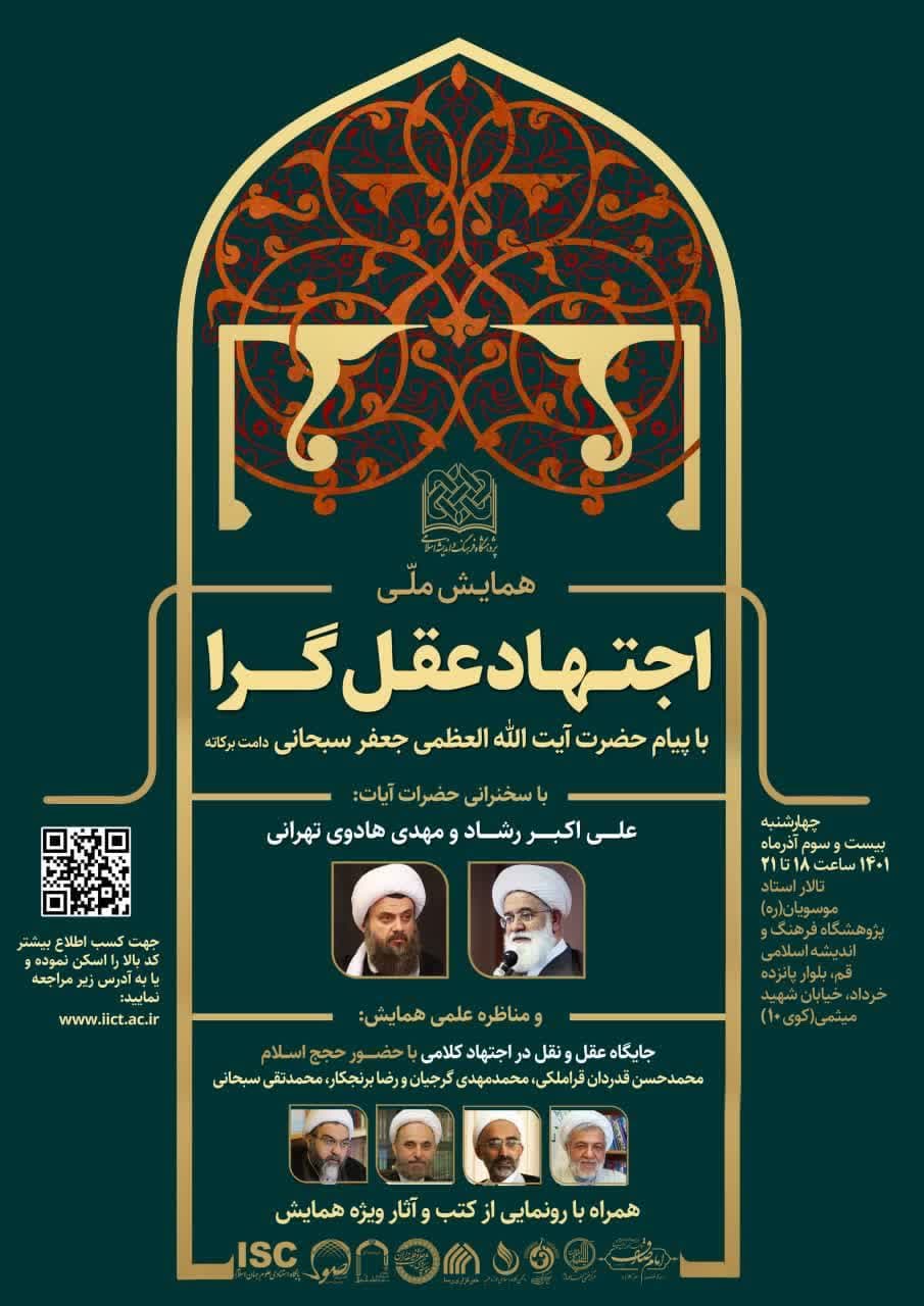 به گزارش روابط عمومی انجمن کلام اسلامی حوزه، همایش ملی اجتهاد عقل گرا توسط پژوهشکده حکمت و دین پژوهی با پیام آیت الله العظمی سبحانی و همکاری برخی نهادهای علمی کشور ۲۳ آذرماه ۱۴۰۱ در شهر مقدس قم برگزار می شود.